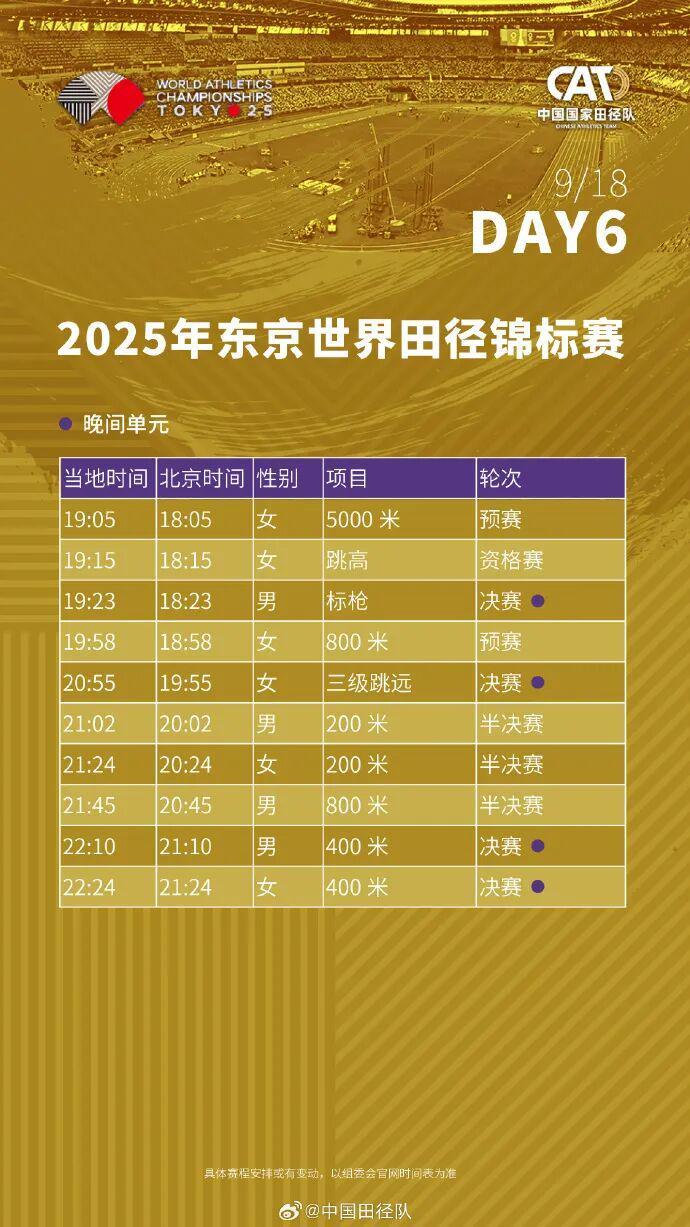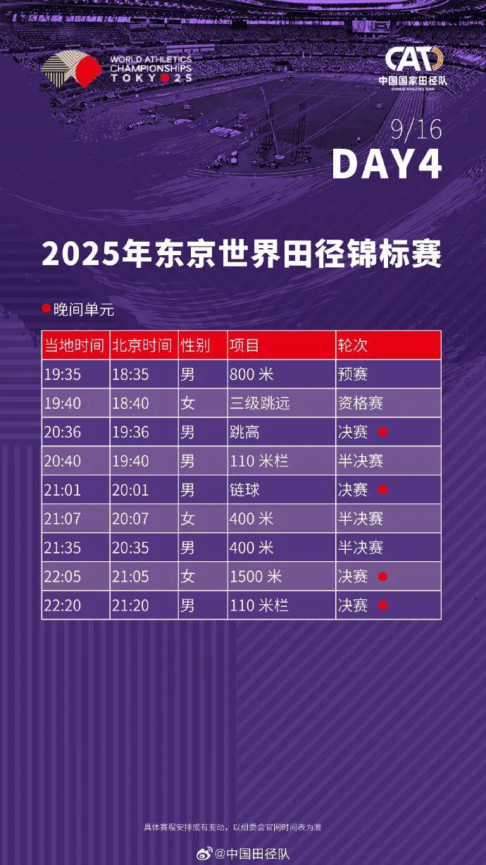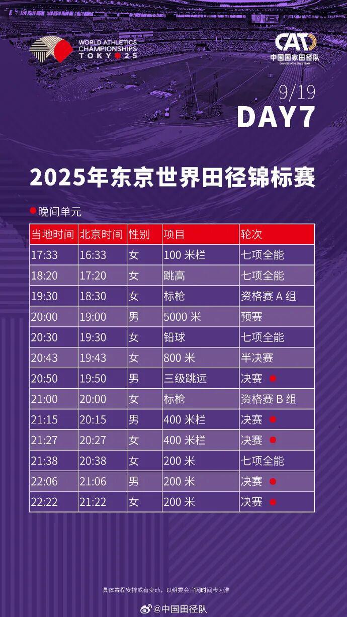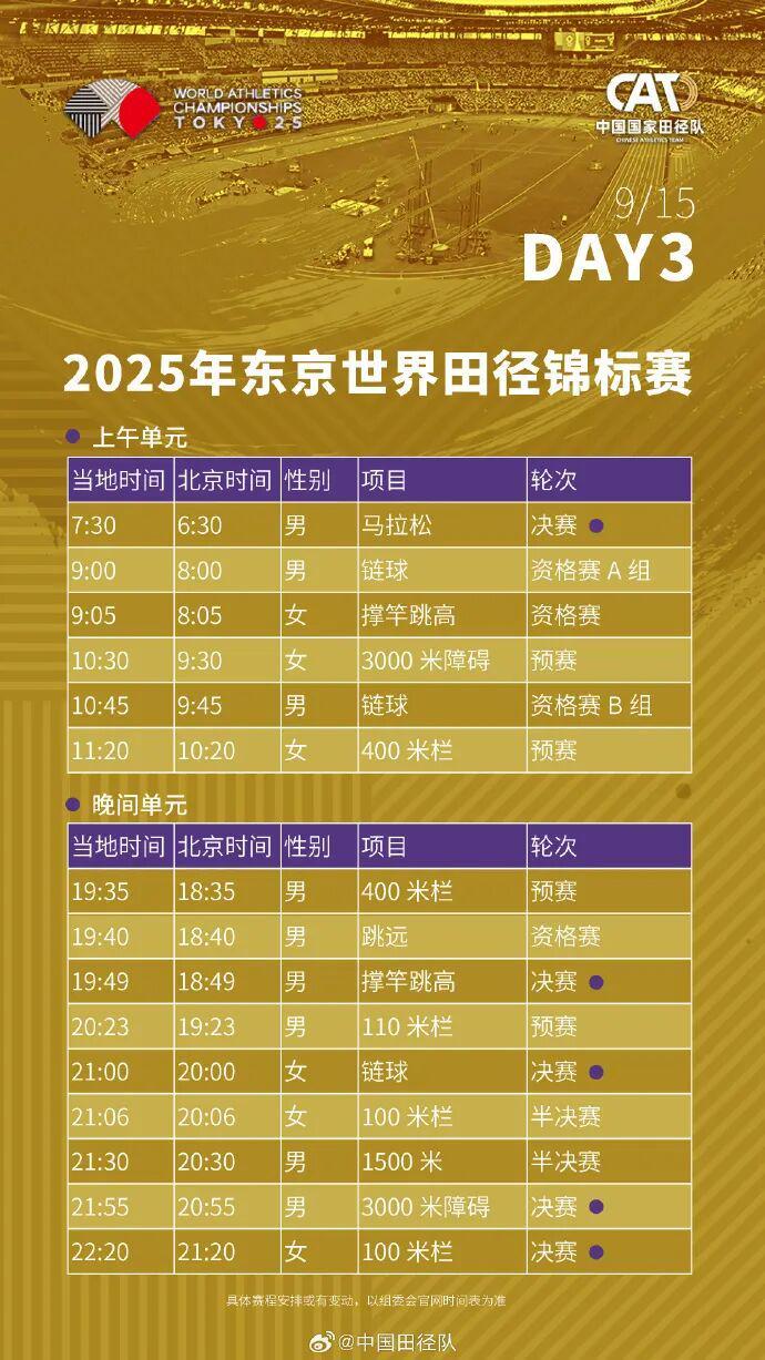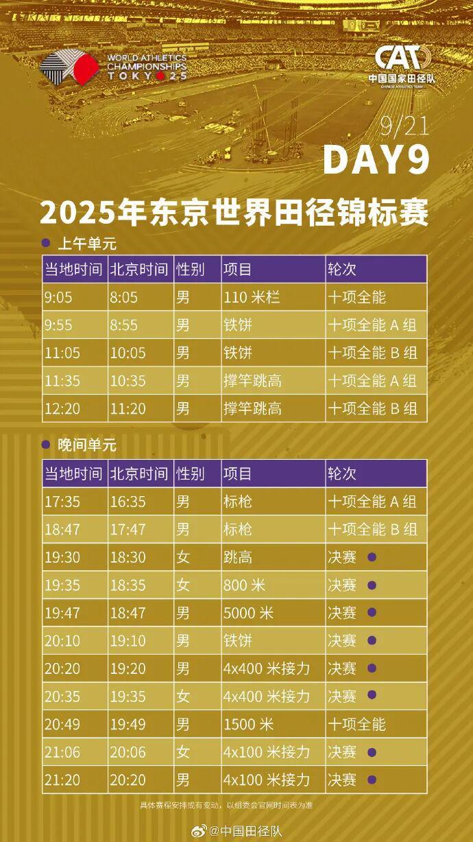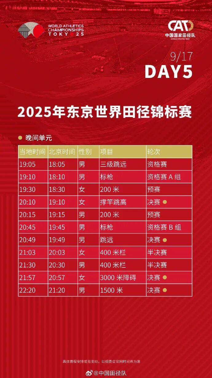 2025东京田径世锦赛全赛程